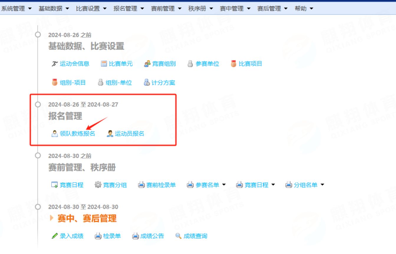 注:需先进行领队教练报名,至少要有一名领队或者教练,方可进行运动员报名。