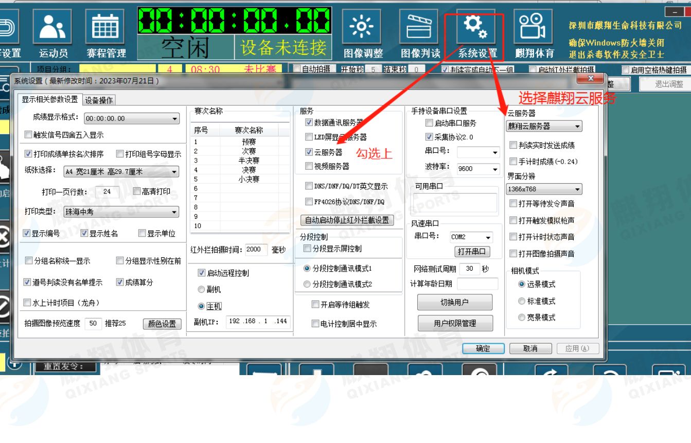 点击【系统设置】-勾选【云服务器】-选择【麒翔云服务器】。