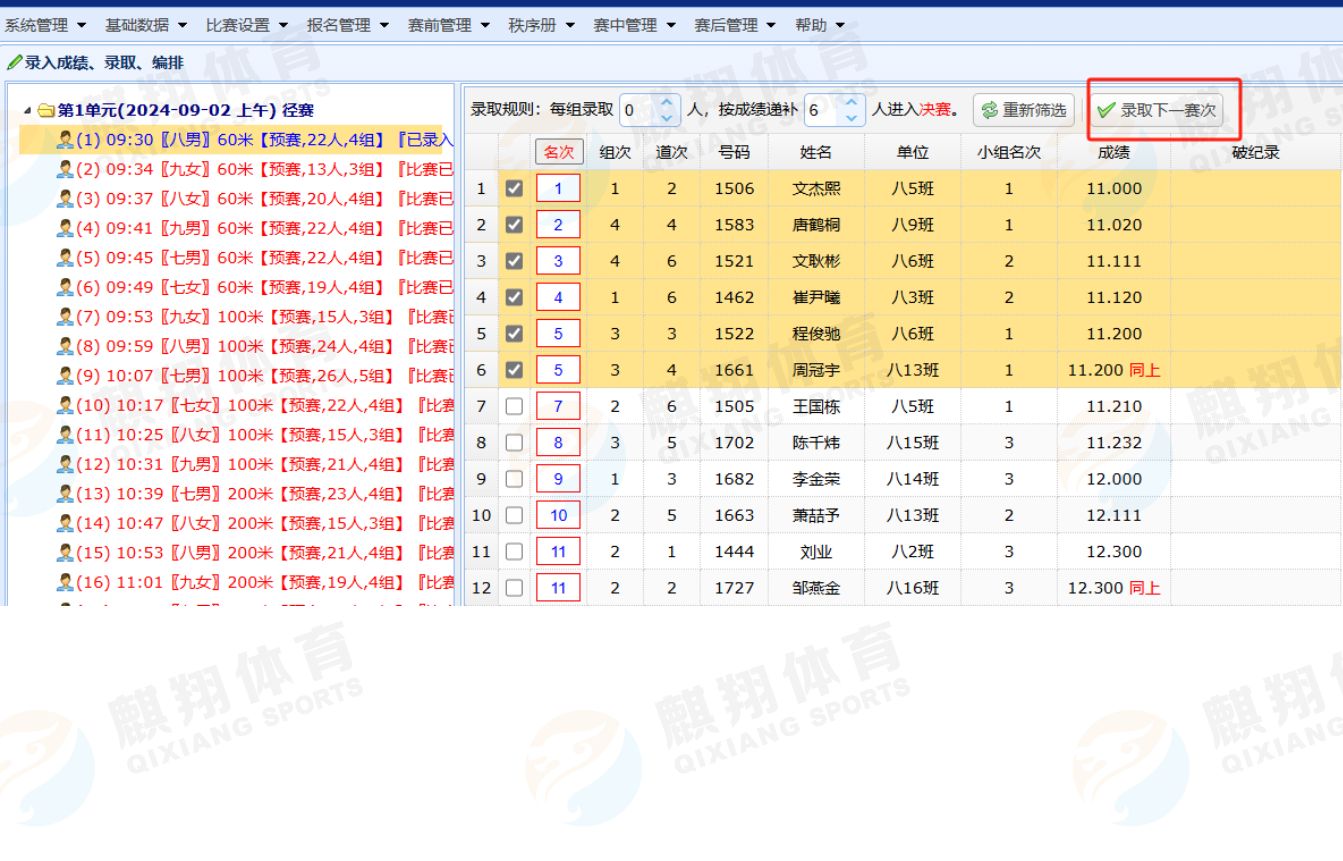 注:如果只有决赛的项目,只需保存成绩,直接录取名次打印公示即可。
